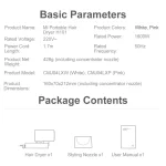 Basic Parameters:Product Name:Mi Portable HairDryer H10/Rated Voltage:220V