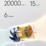Superb Performance, ComprehensiveUpgrade:Powerful Airflow, Refreshing Hair Drying Speed High-performance motor with a speed of 20000rpm, providing strong power tgenerate a powerful airflow of 15m/s.