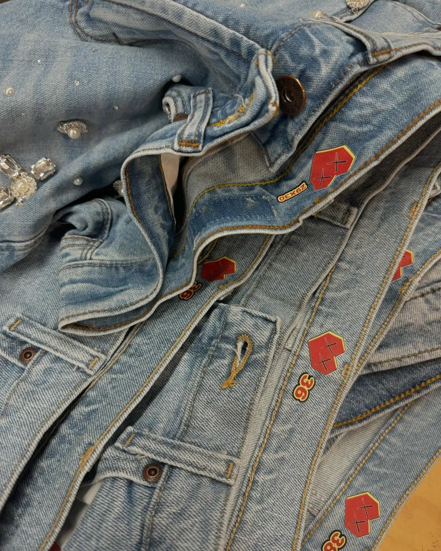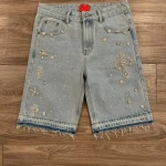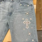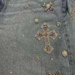 Y2K Gothic Diamond Cross Embroidery Denim Shorts American Retro Blue Gym Shorts Rhinestone Streetwear Hip Hop Men Women Jorts