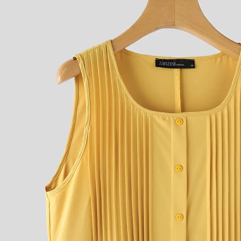 ZANZEA 2024 Summer Holiday Long Dress Solid Sleeveless Pleated Vestidos Korean Fashion Loose Sundress Casual Beach Tank Dresses